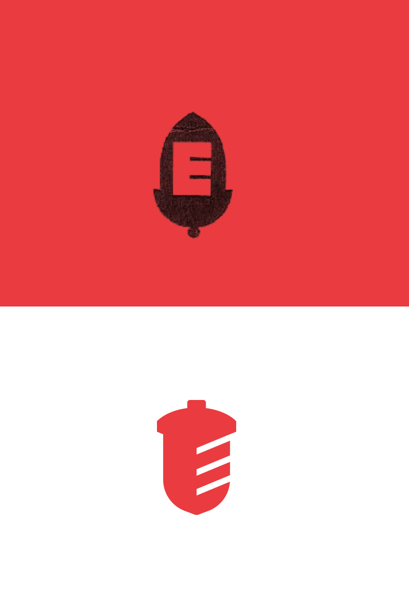 Im oberen Bild ist das alte Bildlogo. Eine Eichel mit einem E drin. Das rote Logo ist das Ergebnis des Redesigns.