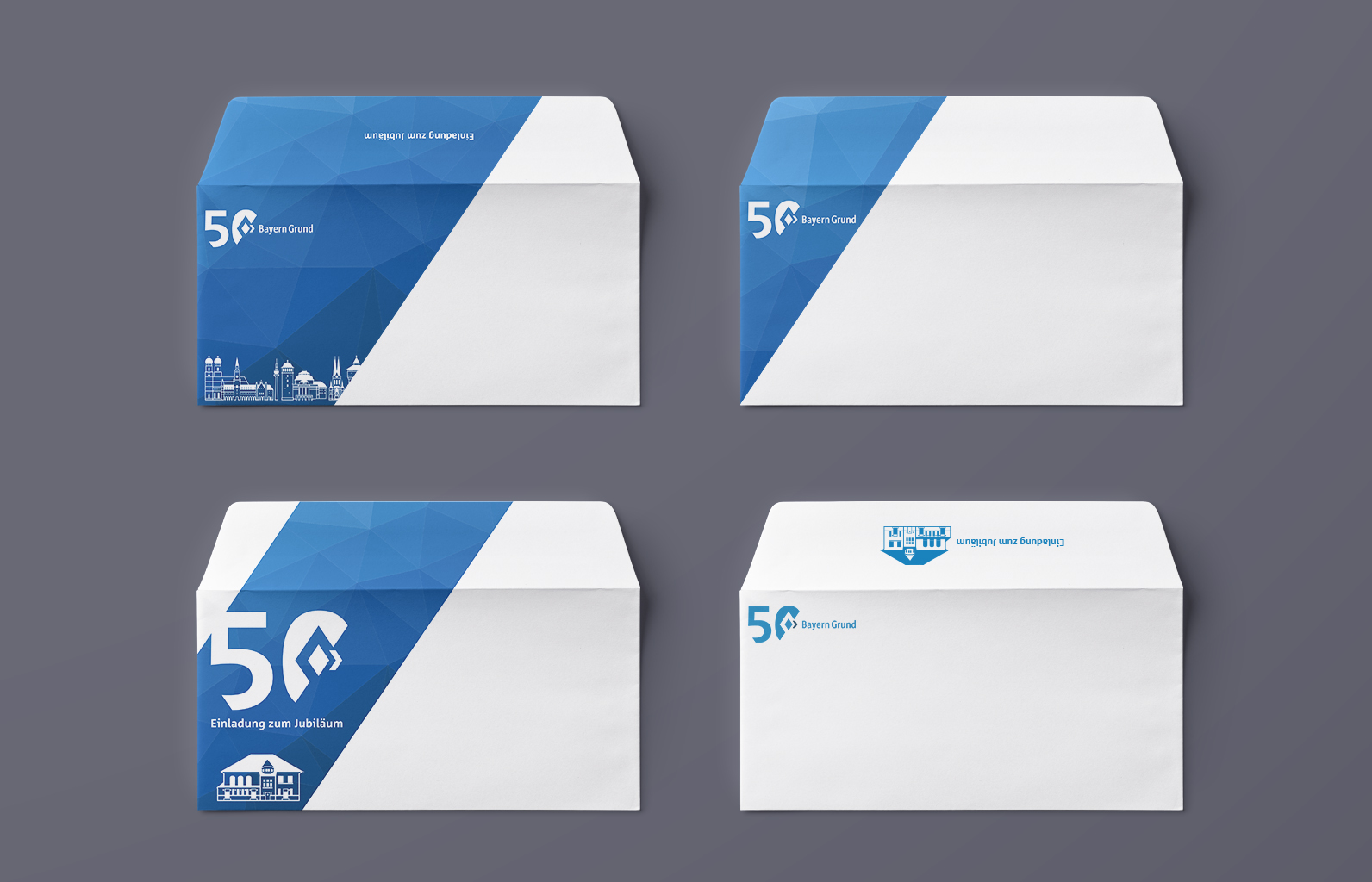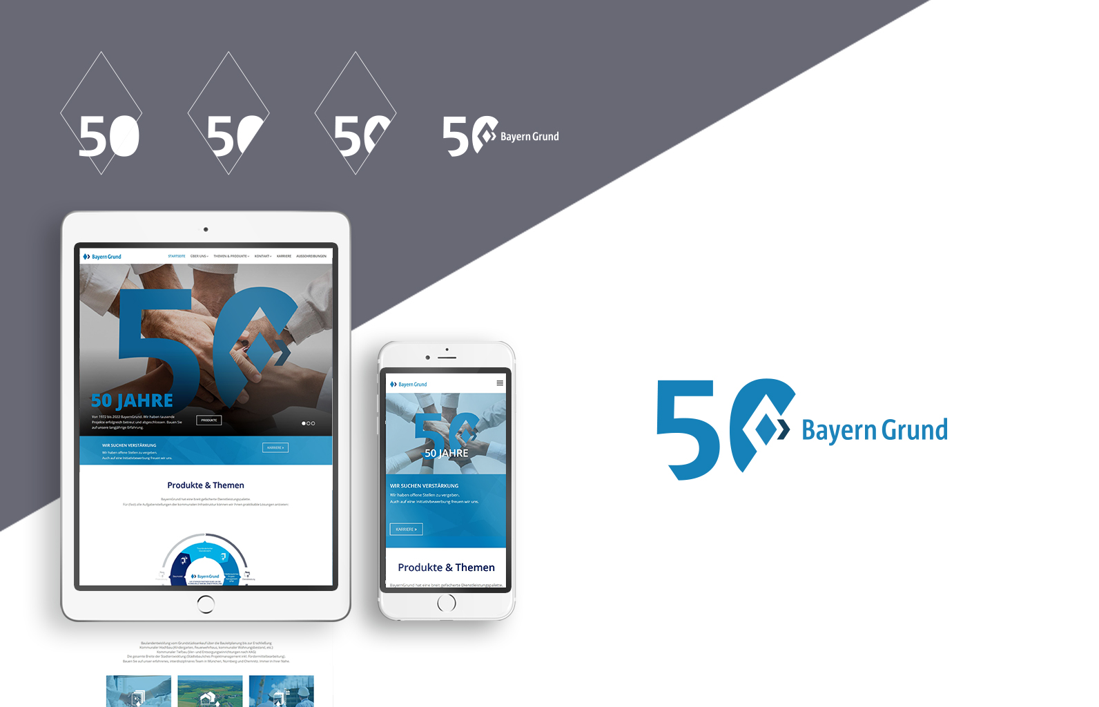 Die Zahl 50 wurde in der Raute platziert und der Überschuss abgeschnitten. So entsteht eine dynamisches Logo. Das Logo wurde von der Raute abgeleitet und das Konzept aus dem Pfeil entwickelt. So war das ursprüngliche Bildlogo die Insperiation für die 50 Jahr Jubiläum.