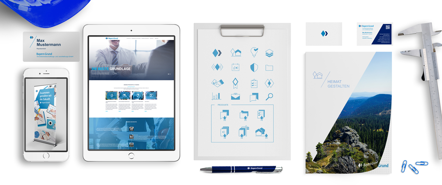 Die Vorgabe vom Kunden, dass das Logo bleibt. Auf dieser Basis wurde das Corporate Design und die Produkte wie beispielsweise die Symbole die Schräge entwickelt.