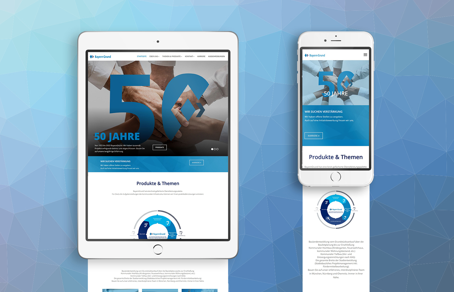 Die aufstrebende abgeleite 60 Grad Linie ist eine unterstützende Grafik. Diese steht für Dynamik, steigenden Erfolg und eine positive Entwicklung für Bayern. Die Firma steht für weitreichendes Wachstum und fortführende, steigende Verbesserung für das Land. Der Kunde, der Bayerngrund engagiert, erhält lösungsorientierte Hilfe, die dauerhaft zu einem positiven Resultat des kommunalen Projektes führt. Ein Grund mehr sich für Bayerngrund zu entscheiden: Erfolg.