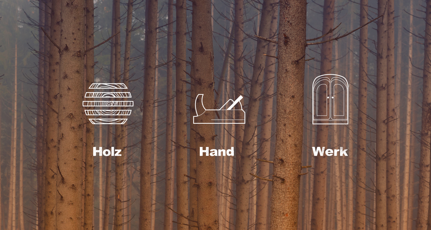 Das Logo wurde per Hand entwickelt, um den "händischen" Charakter der Schreinerei hervorzuheben. Wunsch des Kunden war eine Eschenbaumscheibe.