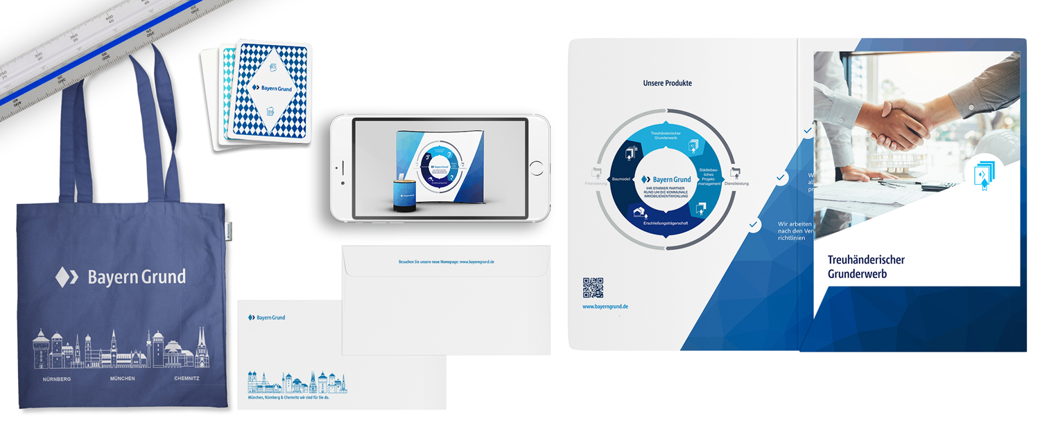 Die ständige Wiederholung des Produktkreislaufes in den Endprodukten bringt den Endkunden bei, was die Firma anbietet. Durch die Münchner Wurzeln der BayernGrund war ein Schafkopfkarten Deck ein besonderes Gimmik für Kunden der Messe. Auch für die Mitarbeiter der BayernGrund die eine gemütliche Pause zum "Schafkopfen" einlegen können.