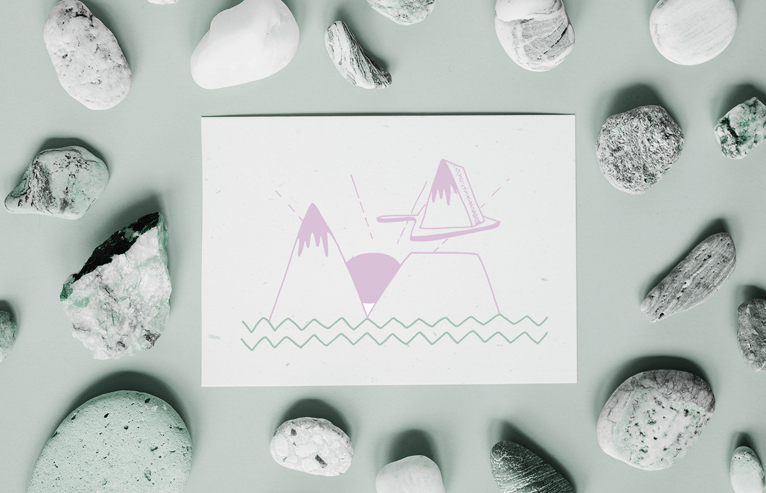 Handgezeichnete Illustration mit Bergen die als Torte serviert werden.
