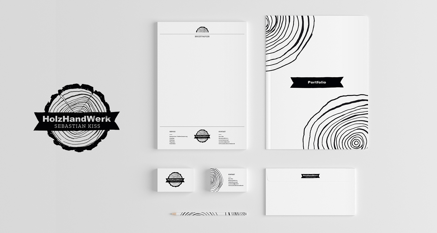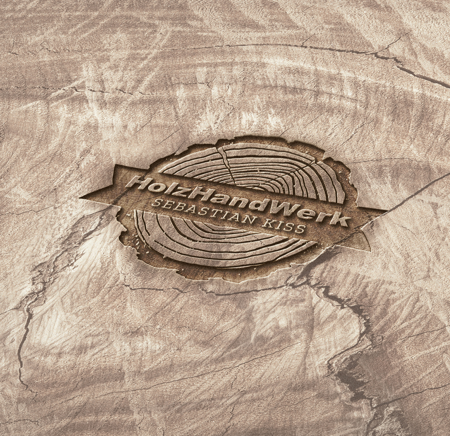 Das Logo wurde per Hand entwickelt, um den "händischen" Charakter der Schreinerei hervorzuheben. Wunsch des Kunden war eine Eschenbaumscheibe.